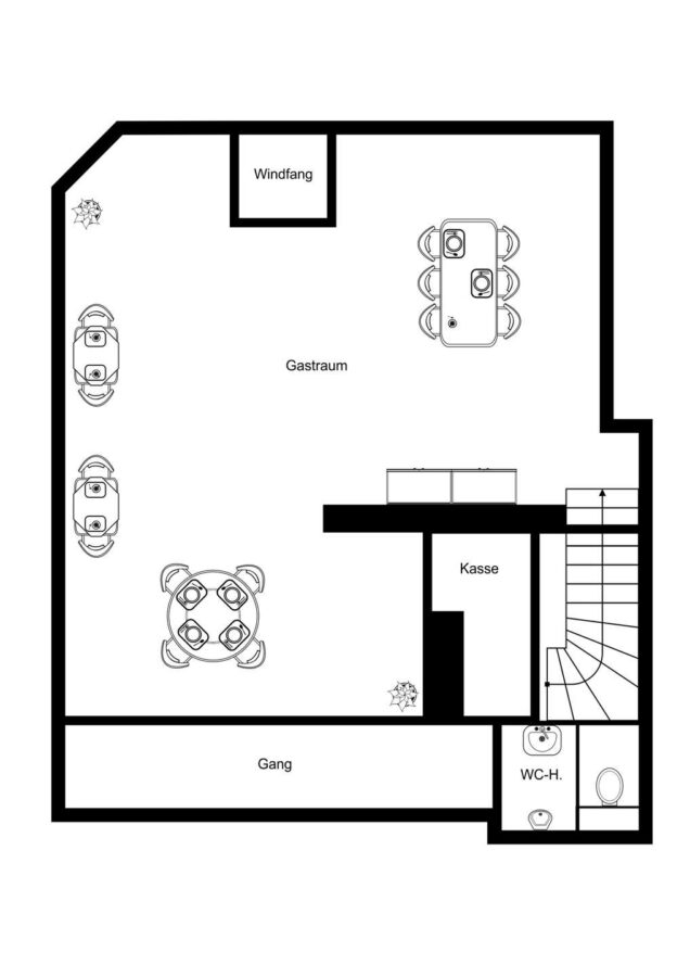 Großzügiger Gastraum mit ca. 75,45 m² und guter Sichtbarkeit