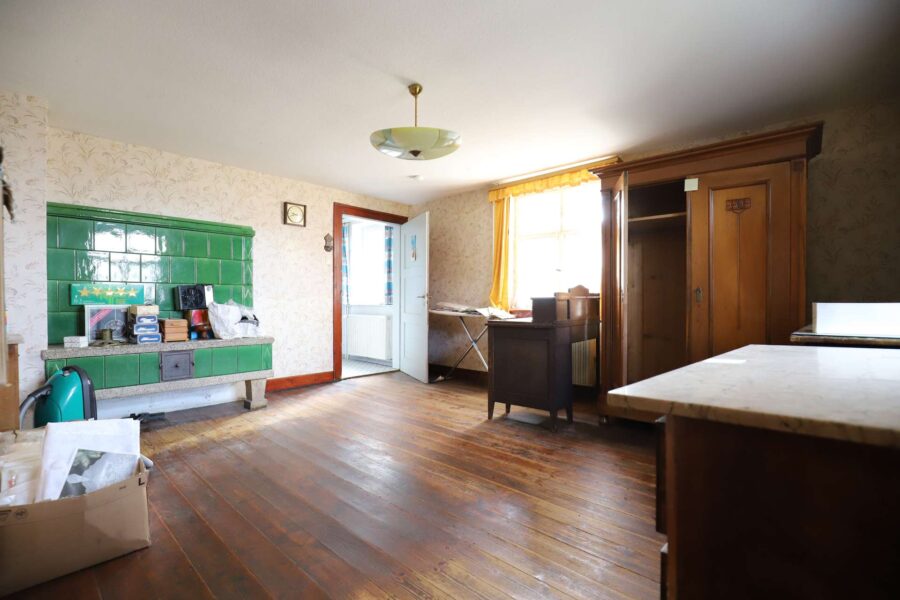 Wohnhaus: Ursprüngliche Bausubstanz aus den 1930er-Jahren, mit solider Struktur; alle Wohn- und Nebengebäude erfordern umfassende Modernisierung und Renovierung.