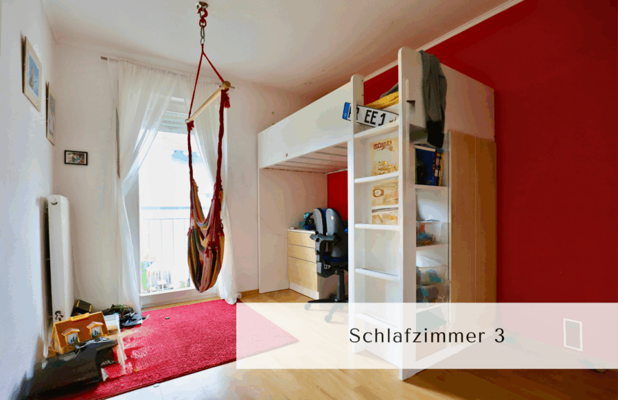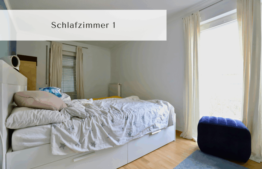 - 1. OG: Drei Schlafzimmer + großes Tageslichtbad (Badewanne, Dusche, WC, Waschbecken, Fenster)