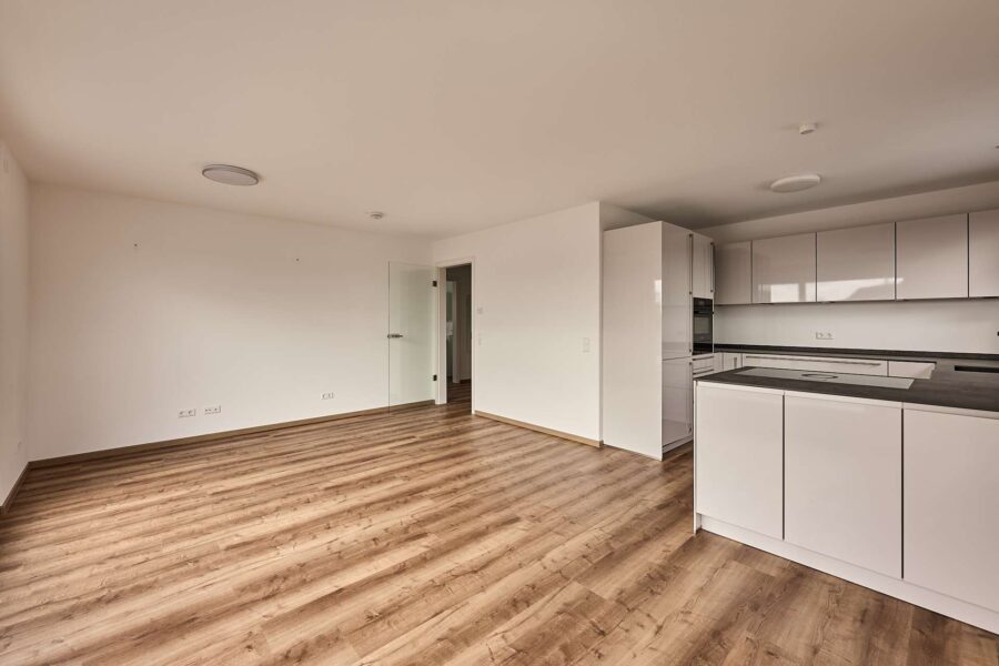 Der großzügige Wohn- und Essbereich mit offener Küche bildet das Herzstück der Wohnung. Eine große Schiebetür zur Dachterrasse sorgen für eine lichtdurchflutete, angenehme Atmosphäre. Die hochwertige Einbauküche (Wert ca. 31.000 €) ist modern gestaltet, perfekt in den Wohnbereich integriert und mit erstklassigen Markengeräten ausgestattet – sie ist bereits im Kaufpreis enthalten.