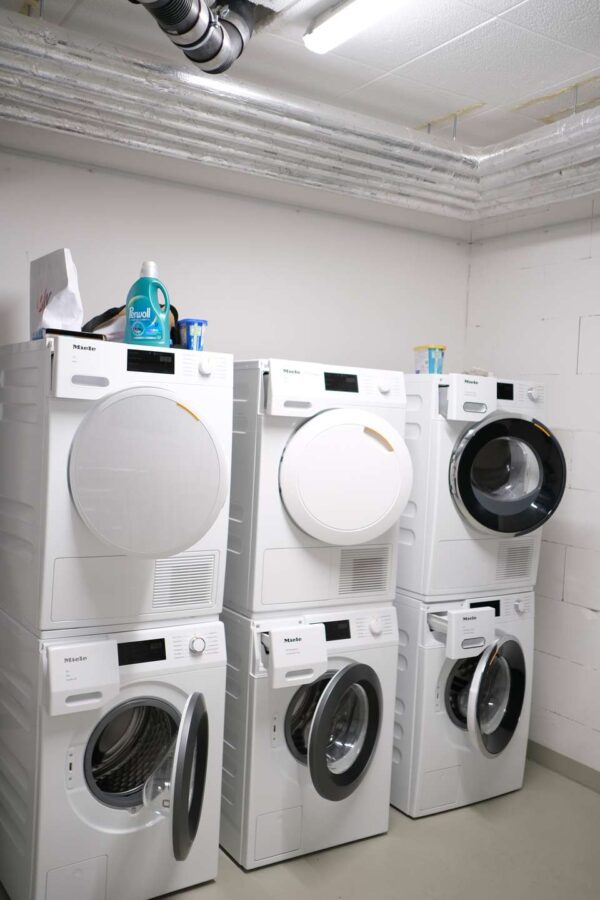 Zudem stehen zwei breite Tiefgaragenstellplätze (je 22.000 €, obligatorisch) zur Verfügung, ein Kellerabteil sowie die Mitnutzung gemeinschaftlicher Bereiche wie eines Waschraums und eines großzügigen Fahrradraums. Die Tiefgarage wird nur mit einem weiteren Punkthaus geteilt (in Summe 20 Stellplätze), was kurze Wege und zusätzlichen Komfort bietet.