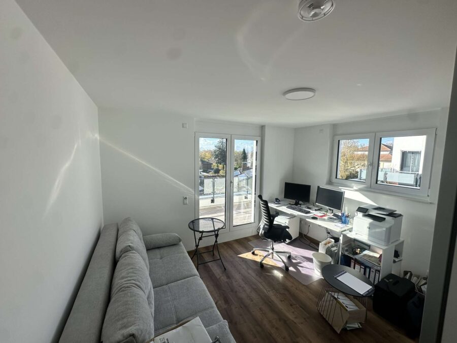 Ein besonderes Highlight ist die rund 20 m² große Dachterrasse mit Südwest-Ausrichtung, die den Wohnraum ideal nach außen erweitert – perfekt für entspannte Stunden, gesellige Abende oder sonnige Tage. Vom Arbeits- bzw. Kinderzimmer führt ein weiterer Terrassenzugang ins Freie.