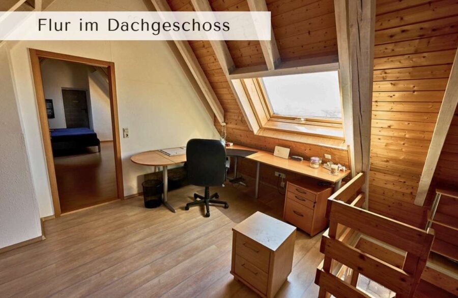 Über eine Treppe erreichen Sie das obere Stockwerk, das vielfältige Nutzungsmöglichkeiten bietet. Die Deckenhöhe von ca. 3,60 m sorgt zusätzlich für ein offenes, luftiges Raumgefühl.