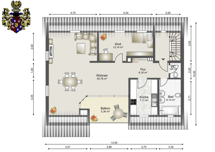 - Kinderzimmer: 13,14 m²