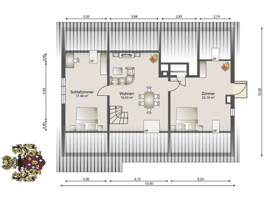- Schlafzimmer links: 17,48 m²