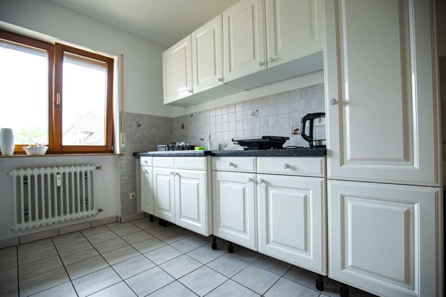 Die Küche verfügt über eine große Arbeitsfläche und lässt sich praktisch gestalten.