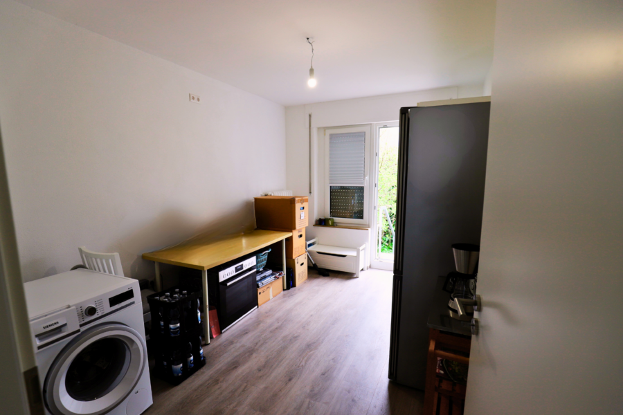 Die hell und großzügig geschnittene Wohnung bietet 2 Zimmer, die sich aktuell wie folgt nutzen lassen: Ein Zimmer dient als Rückzugsort im Schlafzimmer, ein weiteres als Wohn- und Esszimmer. Vom Wohn- und Esszimmer gelangt man direkt auf die Terrasse und den Garten, ebenso gibt es einen weiteren Zugang von der Küche. Eine Küche muss vom neuen Mieter gestellt werden. Das Badezimmer verfügt über eine bodentiefe Dusche und Tageslichtfenster.